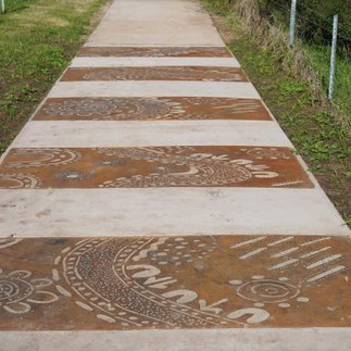 A series of five laser cut corten steel panels placed into the concrete path at four intervals along the trail.